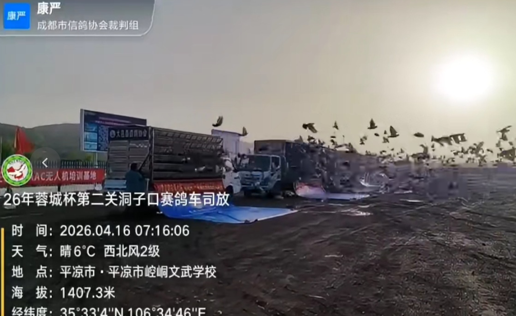 4月16日7点16分,成都市“蓉城杯”三关鸽王特比环挑战赛第二关,于平凉准时开笼放飞。本关赛事共集鸽5528羽,参考空距约600公里。